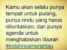 "Kamu akan selalu punya tempar untuk pulang, punya rindu yang harus dituntaskan dan punya agenda untuk menghabiskan liburan"